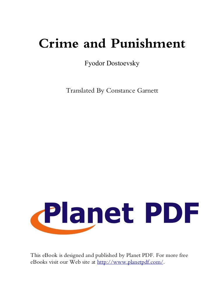 Crime and Punishment: A New Translation PDF Book by Fyodor ... Crime and Punishment: A New Translation PDF Book by Fyodor Dostoyevsky (1866) Download or Read Online Free . Author: Fyodor Dostoyevsky | Submitted by: Maria Garcia | 683610 Views | View Chapter List | Add a Review Crime and Punishment: A New Translation PDF book by Fyodor Dostoyevsky Read Online or Free Download in ePUB, PDF or MOBI eBooks. Published in 1866 the book become immediate popular ...