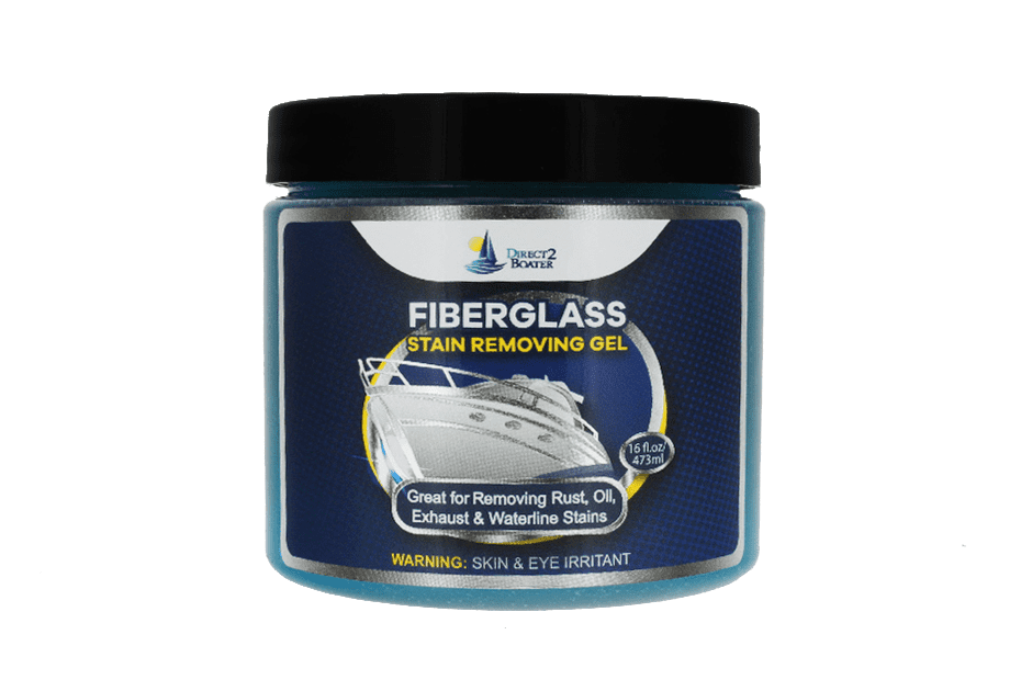 Homemade boat cleaners to make your fiberglass boat sparkle How to remove rust stains from a fiberglass boat? When water and elbow grease won't remove stubborn stains, it's time to up the ante. Low PH ingredients are great fiberglass cleaners and will remove rust stains (e.g., those ugly brown stripes running down from the anchor locker) and waterline stains (e.g., the yellow and brown tannin marks at your waterline).