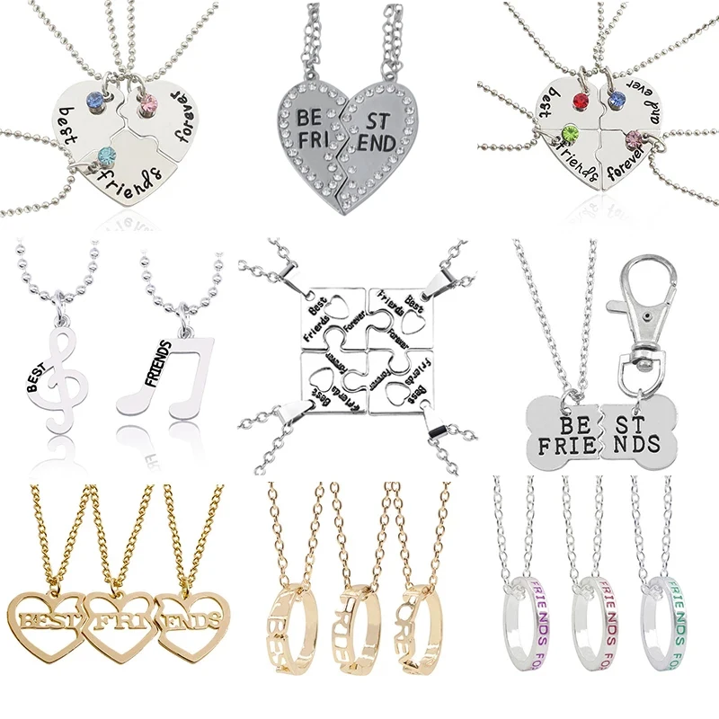 Three Best Friends Necklaces - jenyas.com Best Friend Couples Heart Stainless Steel Love Puzzle Necklaces $14.00 Add to Cart Cross Belly Button Ring $5.00 Add to Cart Mickey and Minnie Mouse Best Friend Keychains $5.00 Add to Cart Couples Hour Glass Time Sand Bullet Necklaces $8.00 Add to Cart
