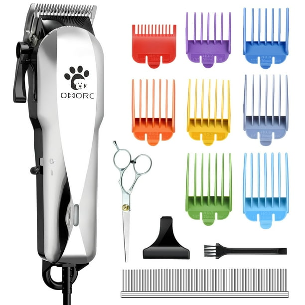 OMORC Dog Clippers with 24V Powerful Motor, Plug-in & Dog Grooming Hair Trimmer Kit with 8 Comb Guides for Thick Coats Dogs Cats Horse Pet